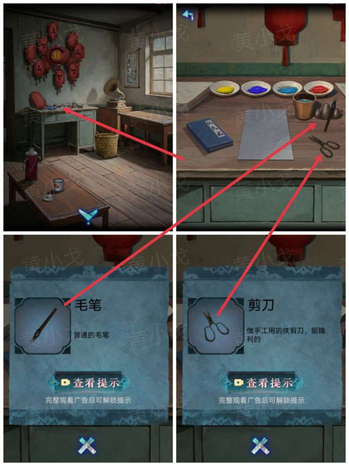 5.点击桌子,获得【剪刀】和【毛笔】