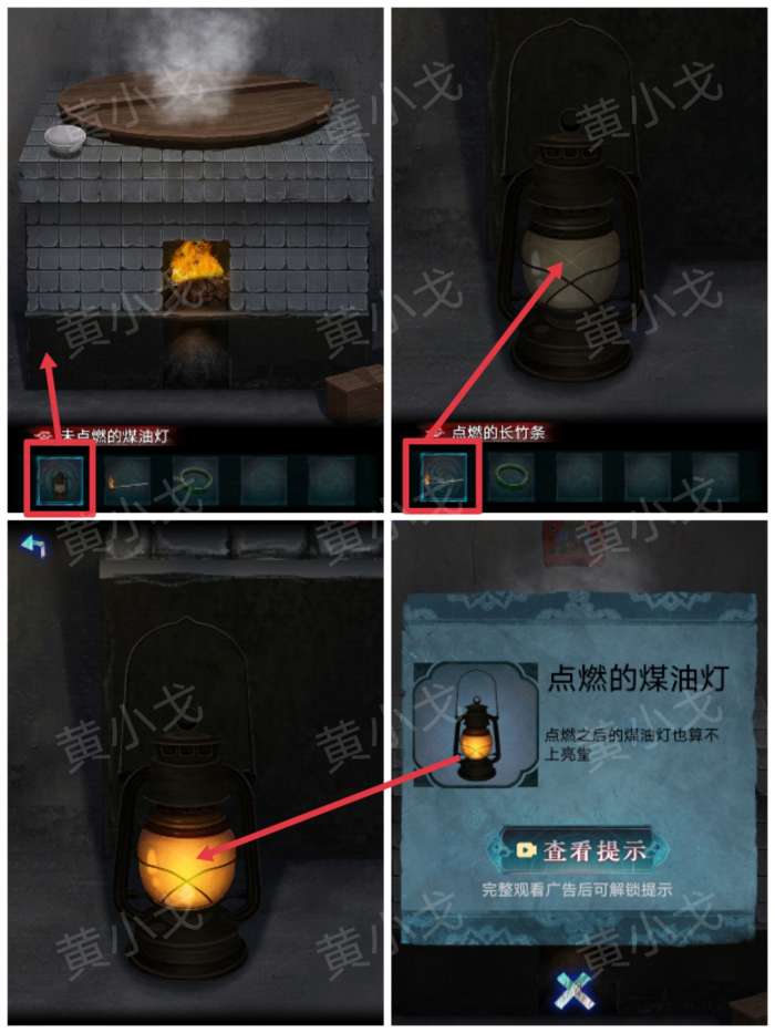 21.使用【点燃的煤油灯】,进入密道;拿【玉镯】给纸扎手