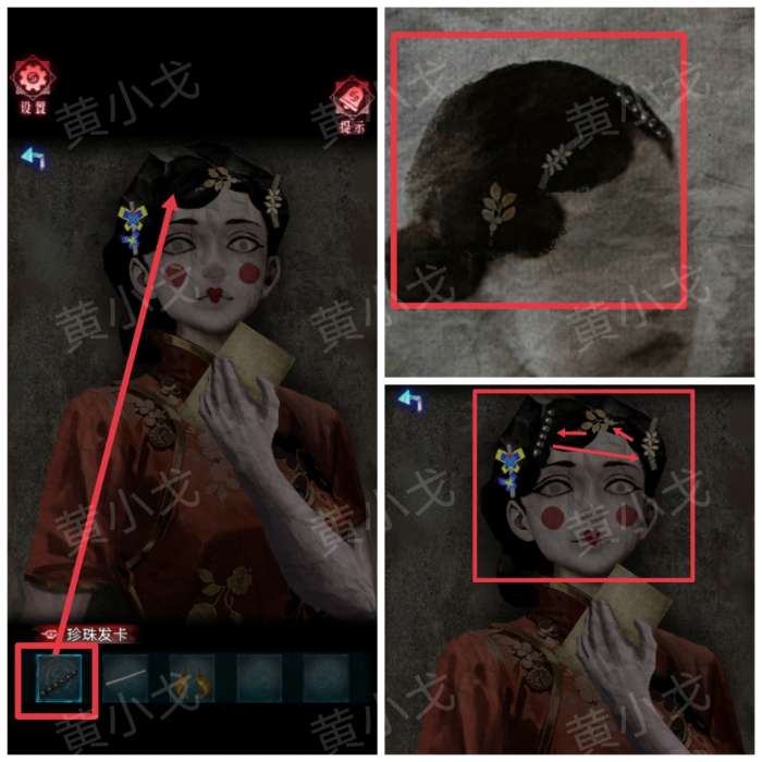15.给纸人戴上【珍珠发卡】;根据照片上的线索,调整发卡的位置