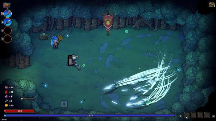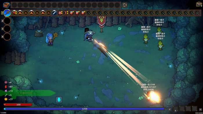 因为「狴犴飞剑」的发射要搭配法术施法,最搭的法术飞弹就是「激光」,魔法值消耗低,还能减少施法间隔和冷却,很容易把法杖的施法间隔和冷却减到很低的状态,然后无限发射。