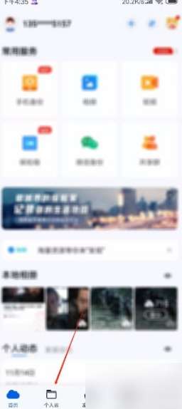 2、进入到软件主界面后,我们在界面底部找到“个人云”选项,点击该选项就能进入到个人云页面。