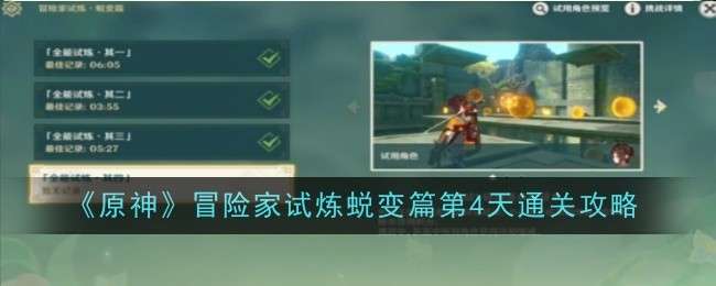 《原神》冒险家试炼蜕变篇第四天共有3个挑战,玩家只需达到对应条件即可快速通关,其中需要选择合适的角色,下面小编为大家整理了详细的冒险家试炼蜕变篇第4天攻略,感兴趣的不要错过了。