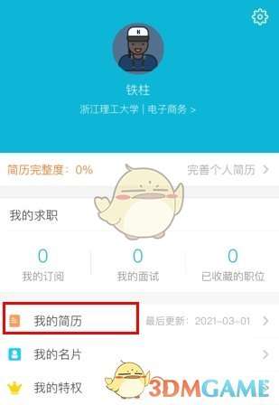 1、点击我的界面中的【我的简历】