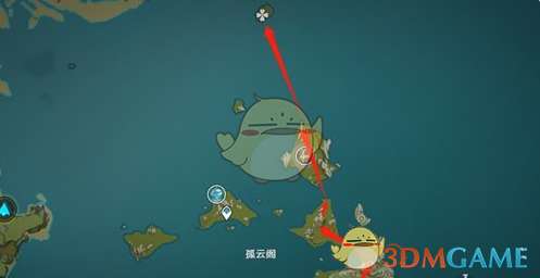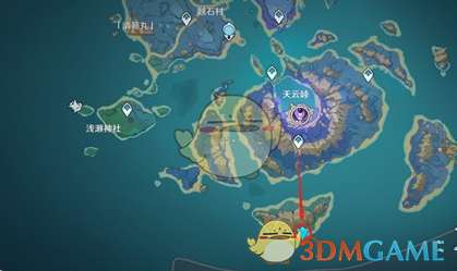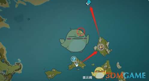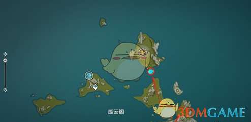 对于体力充沛的朋友,建议从这处游至无相之岩,并借助小风车的风力飞跃至爱心岛。在那里,你可以挖掘到标记的圆形小岛上藏有的宝箱,未收集的朋友不妨顺道去岛上收获一番。