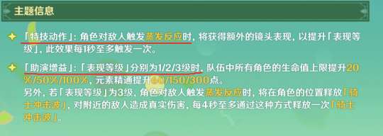 说明:完成 “特技动作” 要求可以提升 “表现等级”,获得增益效果,最高三级。