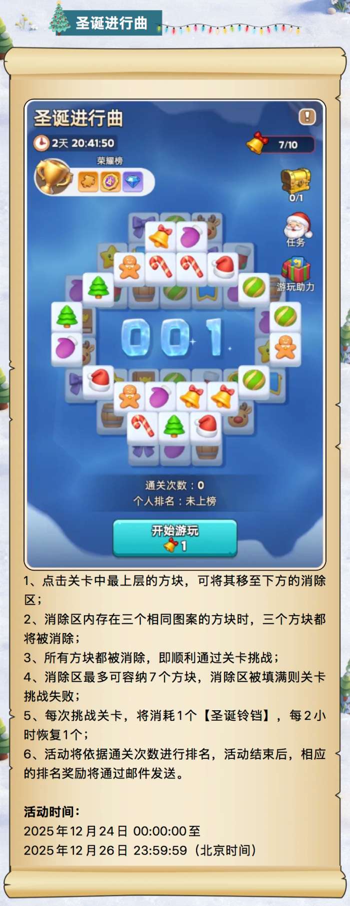 圣诞活动时间:2025/12/23 00:00:00~2025/12/29 23:59:59(部分活动将持续至2025/12/30 23:59:59北京时间)