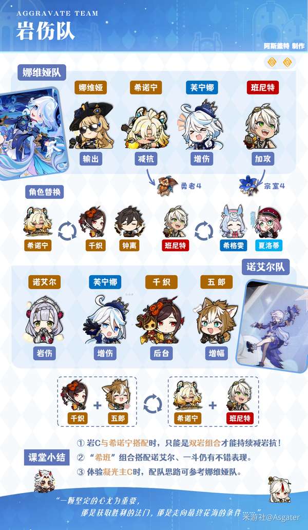 ◆芙宁娜是非常通用的增伤辅助,编个顺口溜总结一下: