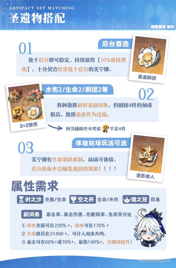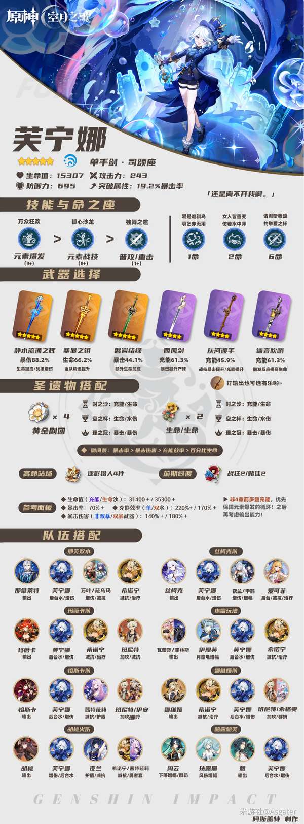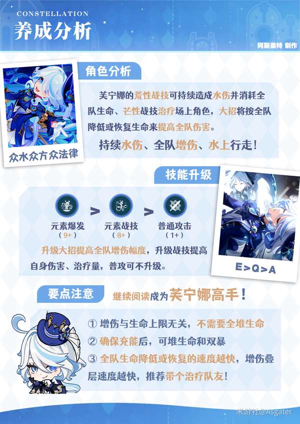这里是阿斯盖特,本期是众水、众方、众民与众法律的女王——「芙宁娜」的角色攻略!
