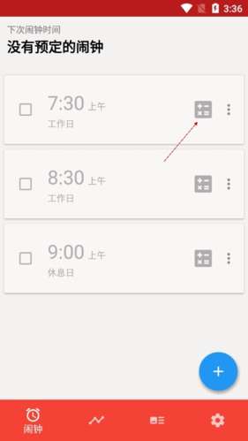 1、首先用户需要点击你要设置拍照的闹钟。