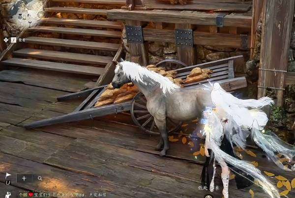2、在贾毛附近找到马匹,互动收集马鬃毛;