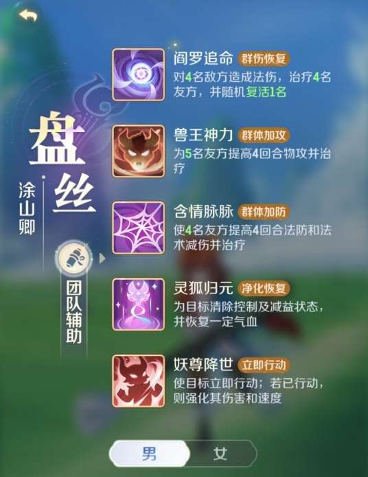 最重要的是,地府的二技能倩女幽魂会对被该技能命中的敌人施加类似易伤的效果,提高它们所受到的伤害,并不会直接给队伍里的角色施加增益,若队伍里的其他人击败了受到易伤效果的敌人,那后续在攻击其他敌人时,就无法再享受到这一方面的增益。但盘丝不一样,它的二技能兽王神力会将增加物攻的增益直接加到队友身上,所以即便队友击败了敌人,那他在攻击其他敌人时,依然可享受到兽王神力的效果,能让他们更为方便地进行转火。
