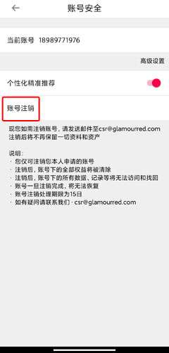 3、在账号安全页面中点击账号注销按钮就可以了。
