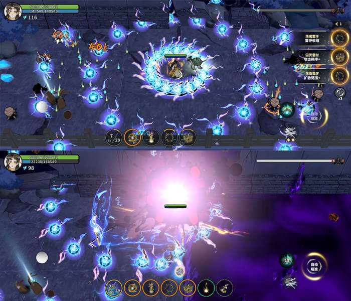 恶棺王会召唤一群小恶棺,小恶棺在靠近玩家附近会发生爆炸,并向周围射出弹幕攻击。小恶棺有血量能够被消灭,我们可以提前将它们斩杀清理。