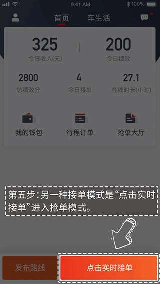 5、另一种接单模式是“点击实时接单”进入抢单模式。