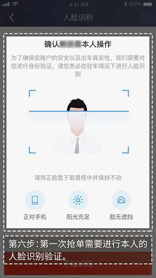 6、第一次接单需要进行本人的人脸识别验证。