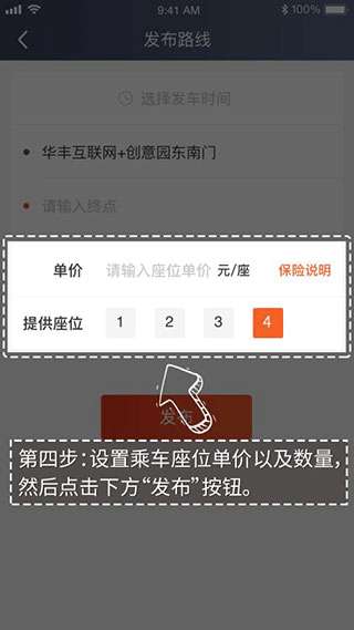 4、设置乘客座位单价以及数量,然后点击下方“发布”按钮。