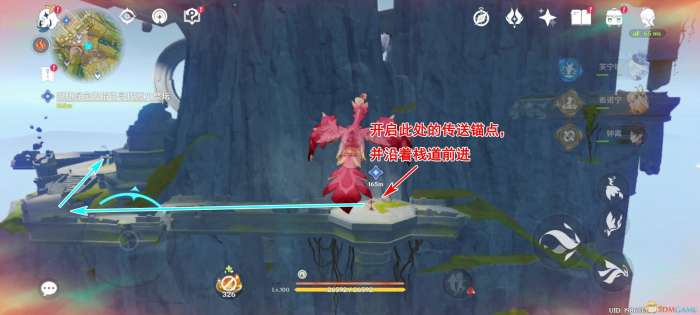2、飞起来后前往传送锚点所在的平台,开启锚点后再顺着道路指引前进。