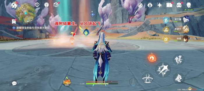 1、首先我们需要魂附平台中心的绒翼龙,借助风场顺利起飞。