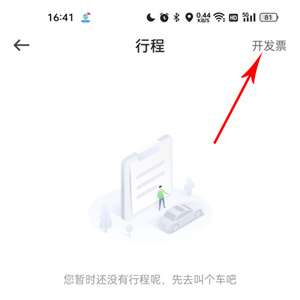 4、进入到行程管理页面之后,右上角有一个开发票的端口,点击进入;