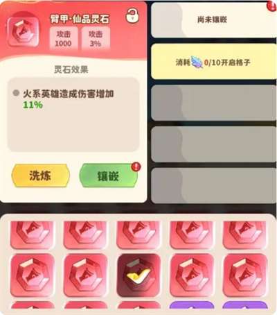 灵石可为对应披挂提供全局属性和效果。通关主线可以解锁相应灵石槽位。