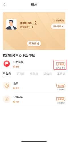 2、这里有很多收集积分的渠道,点击去完成按钮就可以。