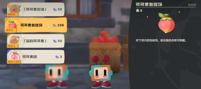 第二个可可果包挂饰是最推荐兑换的,因为现在大部分玩家身上都没有挂饰。这个挂饰佩戴之后效果还挺明显的,比较显眼,算是个不错的装饰品。第一个可可果絮语是精灵奖牌,这个道具说是可以给精灵佩戴,但戴上之后没啥实际作用,纯粹就是个装饰,建议最后有多余花瓣再考虑换。第三个溢韵可可果是名片,个人感觉用处不大,也是属于最后再换的类型。第四个可可果球是个捕捉道具,实际测试下来跟高级咕噜球差不多,基本就是当个高级球用,勉强算有点用处吧。