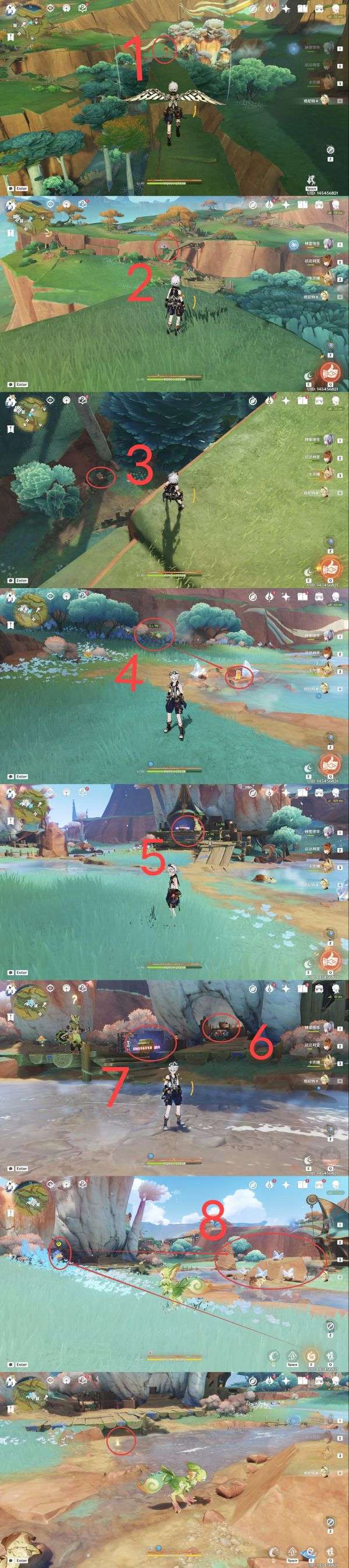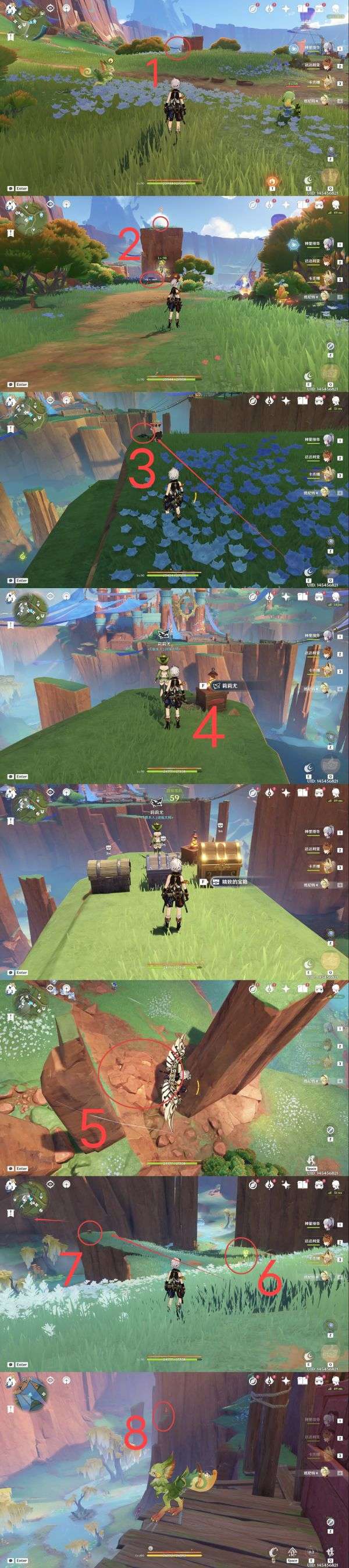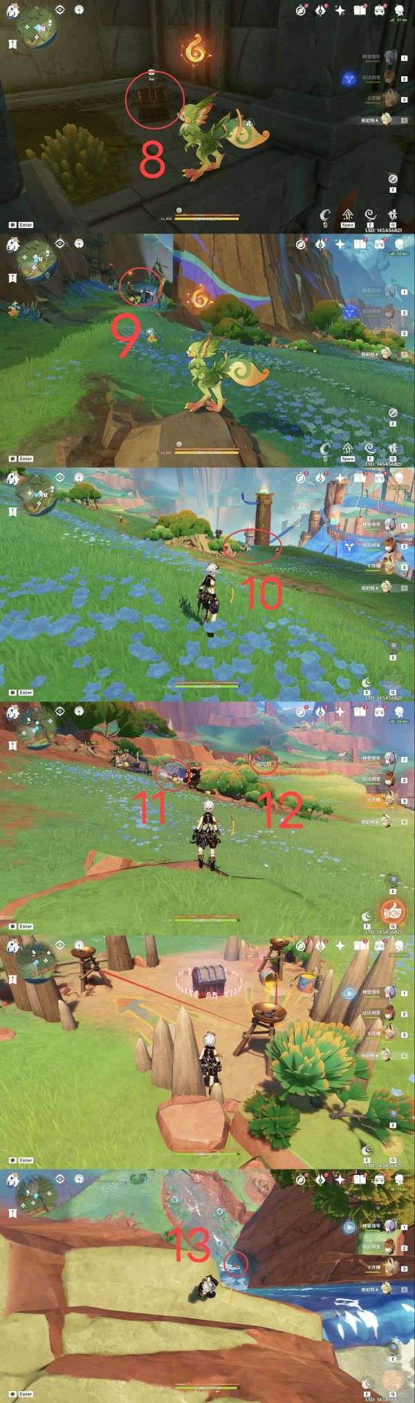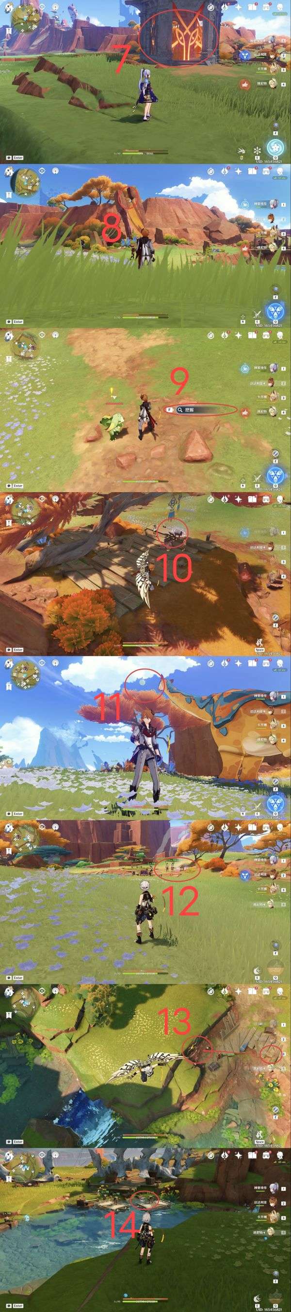 7.地灵龛,建议从点位6魂附峭锋龙或者使用角色卡齐娜直线距离到达指定位置(爬高山);