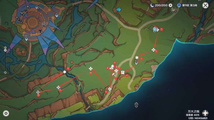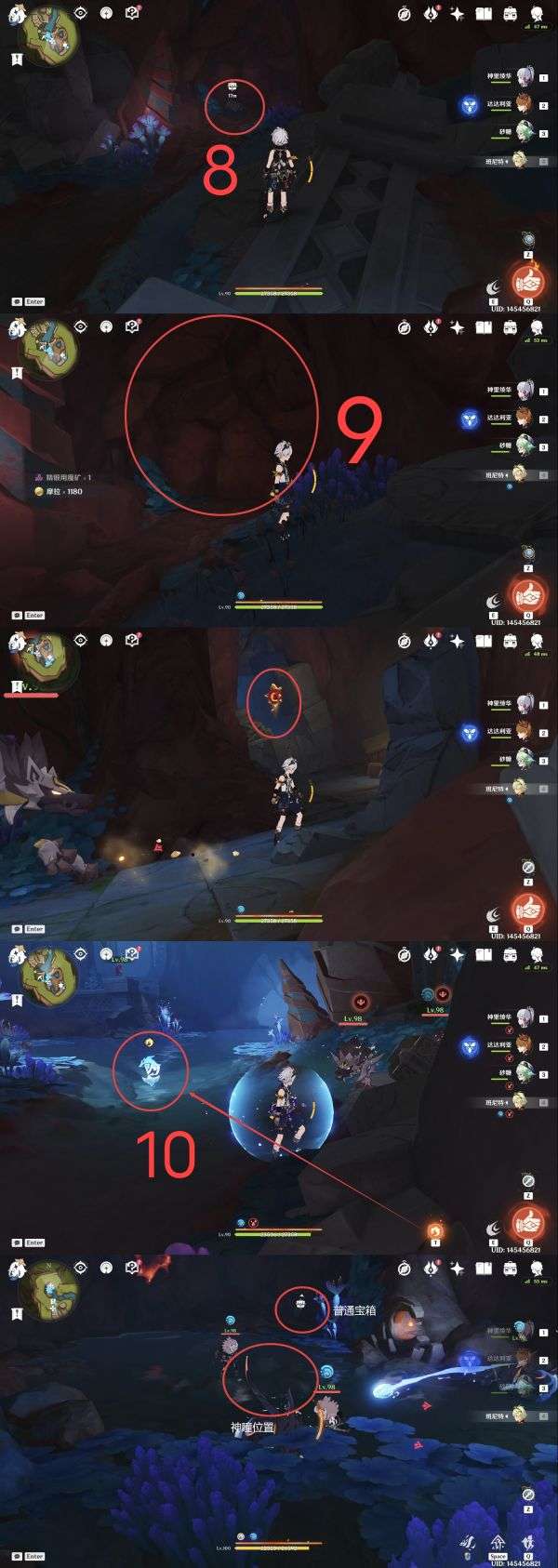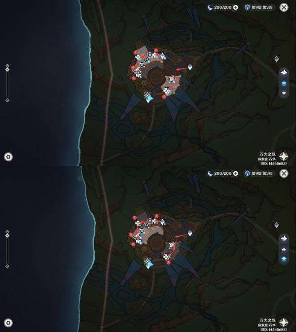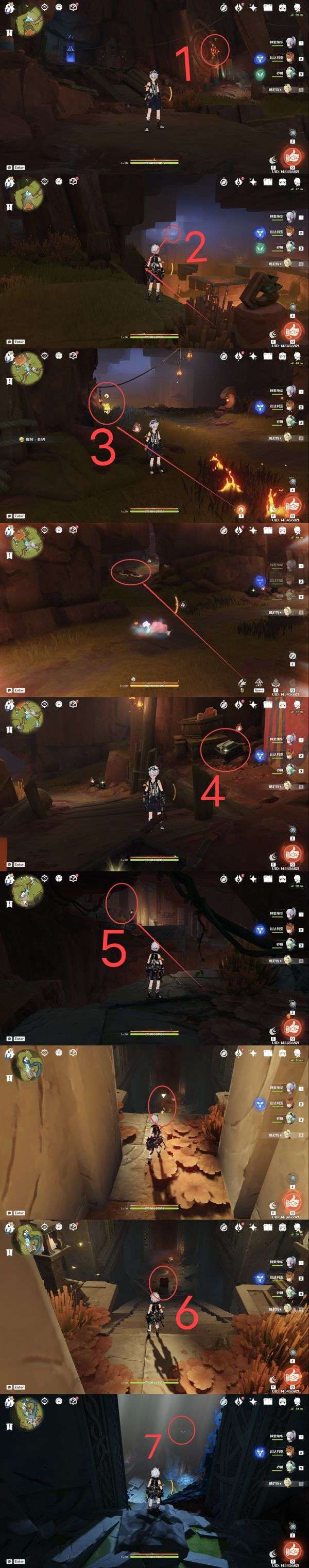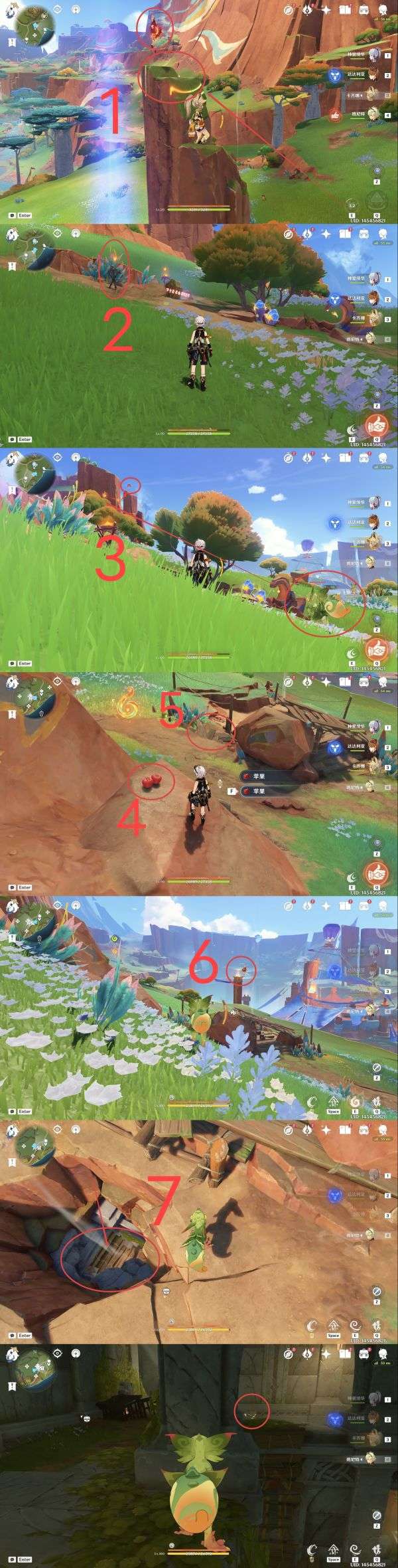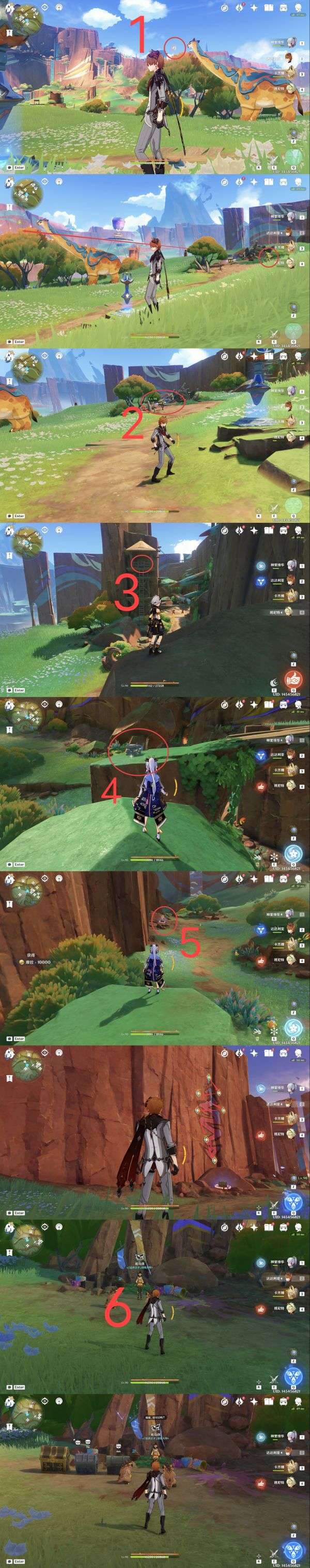 7.地灵龛,建议从点位6魂附峭锋龙或者使用角色卡齐娜直线距离到达指定位置(爬高山);