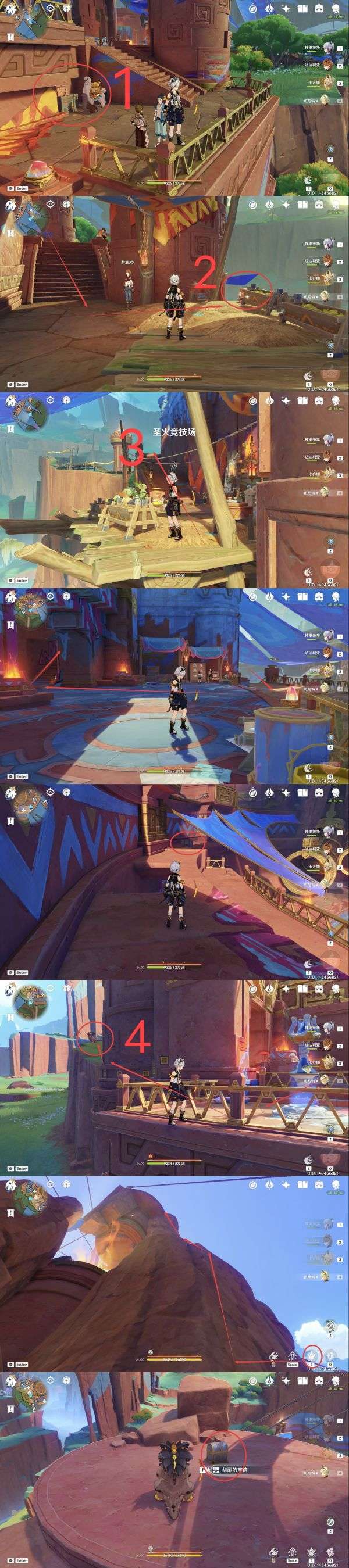9.珍贵宝箱,根据火盆旁的蓝色颜料桶从少到多依次通过火元素攻击点燃火盆解锁。
