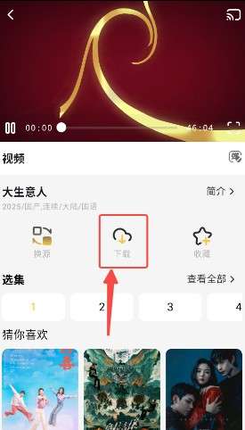2、进入播放页面点击下载按钮。