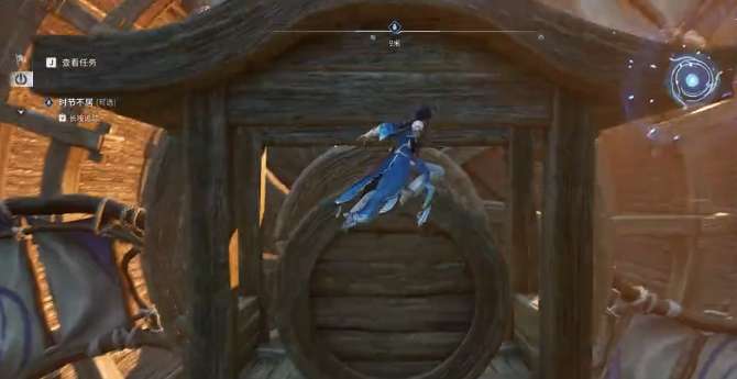 这个挂饰颜色与水车木质结构相近,不仔细观察容易遗漏,玩家可以缓慢移动视角,找到挂饰之后,只要靠近就可以点击一下交互按钮,成功的接取第一个任务。在接取任务之后就需要同步更新任务的目标,玩家可以按照后续的指引,然后去完成任务的流程。可以解锁对应的任务奖励,还有剧情的内容,这个任务本身就是整个情节的开篇。整个触发的过程无需战斗,无需去收集前置的道具,大家可以去体验一下。