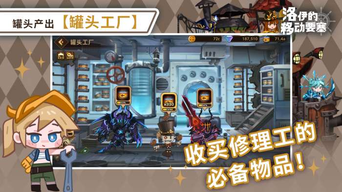 罐头工厂的核心产出是鱼罐头,这是升级修理工的必备资源。修理工负责修复要塞在战斗中受到的损伤,维持要塞的战斗力。通过持续供应鱼罐头,玩家可提升修理工的等级,增强其修复效率和能力。