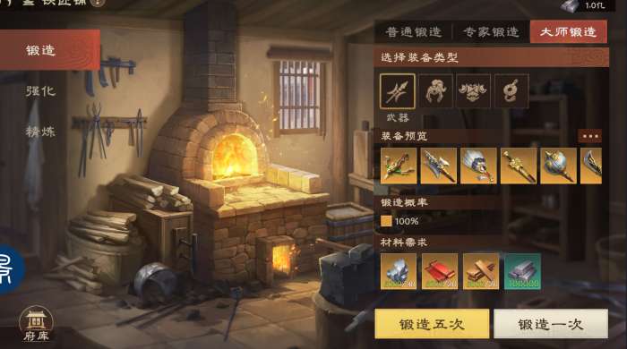 装备获取:铁匠铺每天可接取委托任务,获取装备锻造材料,也可通过战功在商店中购买锻造材料。在铁匠铺界面可通过消耗材料来锻造装备,在装备获取后可通过强化、精炼来进一步提升装备强度。