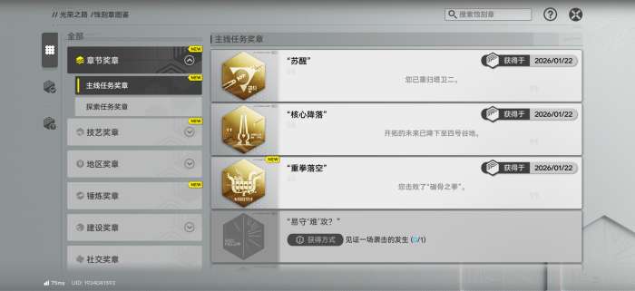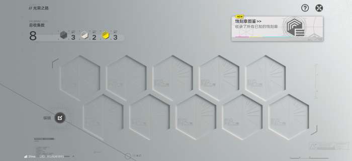 蚀刻章并非独立副本产出,而是贯穿于游戏全流程的进度反馈系统:完成主线关卡、达成特定基建效率阈值、通关活动挑战、解锁干员档案、达成高难度战术目标等行为,均可能触发对应蚀刻章的自动激活。所有已获得及待解锁的蚀刻章,统一归集于主界面右上角“光荣之路”入口,点击即可进入总览面板。