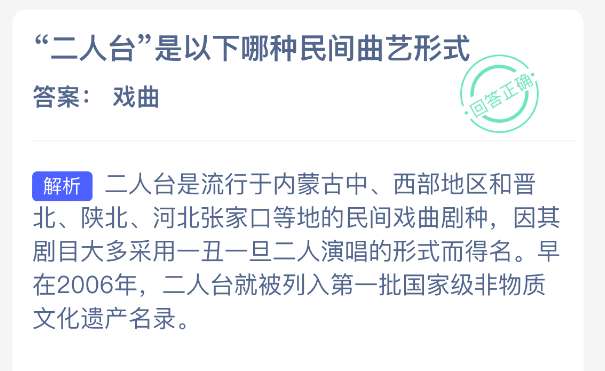 以上就是“二人台”是以下哪种民间曲艺形式?支付宝蚂蚁新村最新答案2026年4月9日,更多精彩内容,请点击关注pk游戏网更新!