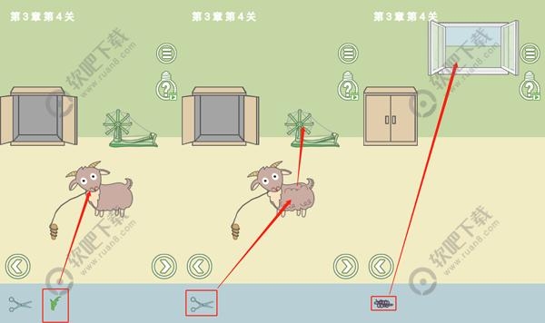 5、来到场景四,将绳子放到窗外,最后过关