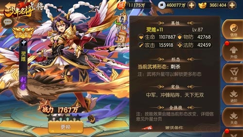 全新金将“灵雎”是吕布和严氏之女,继承了父亲霸道实力的她,作为中路杀神,有着百步穿杨的超强输出效果。其合体技可对所有敌人造成翻倍的伤害,并且有几率打出暴击效果。在灵雎进入刺杀状态下,可以无视各种防御,打出直接伤害并会产生攻击溅射,而在破军状态下,则有着超高的输出效果,瞬间一招致命,是真正能一套连击带走对面所有敌人的超级杀神。