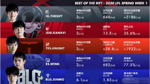LPL春季赛一周最佳阵容出炉,knight获第一周MVP选手