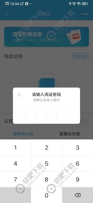 3、进入卡包管理界面后可以在该界面添加自己的证照、卡片以及证明等,在初次添加证件的会有电子亮证的密码设置选项,输入6位的亮证密码即可进行使用。
