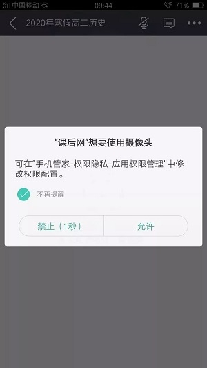 使用手机版的用户在初次登录该软件的时候会有相应的权限开启提示,在提示开启摄像头权限的时候点击允许即可,如果不小心点击禁止后可以前往手机中的设置选项,找到权限设置功能中的课后网软件,点击其中的摄像头权限进行开启即可;