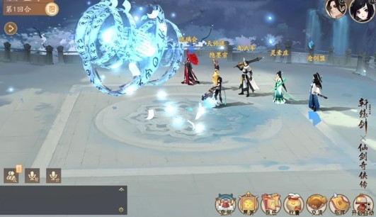 “李逍遥”在释放主动技能“天剑”时,战场内将产生天剑特效。碧蓝大剑从天而降,直击敌人胸膛将其斩杀。如“李逍遥”本人一般,以剑行侠义之德,护少侠周全。