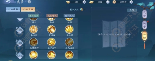 第一排2、3满,第二排1、2、3满,第三排2满,第四排1、2、3满,其中伏魔棍法浮空+1s,和106心法霸体肯定是最重要的,是无相论剑中的关键心法;