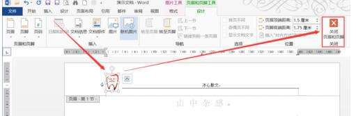 再将logo拖动到适当位置,就能退出“页眉和页脚编辑状态”。