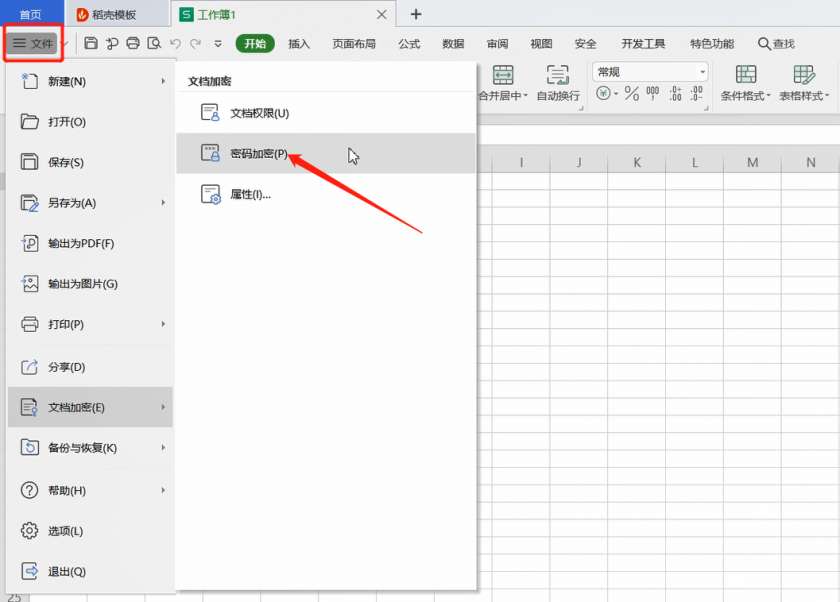 首先打开需要加密的excel文档,在左上角选择文件,点击文档加密,再点密码加密。