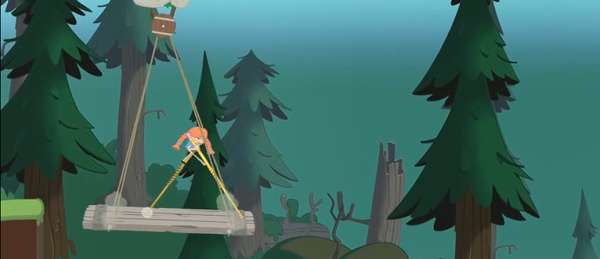 2、进入游戏后控制角色前往热气球上的木板上,到达木板后将角色控制在靠前的位置,站稳之后木板上的绳子就会断开掉下去开始冲刺;