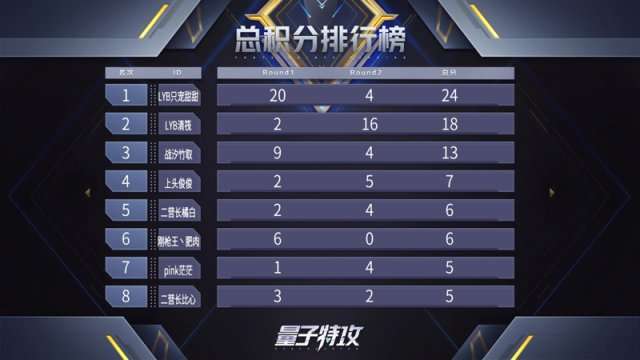 ?量子特攻》精英邀请赛个人赛的比赛,经过两天的激烈对决,80位参赛选手为漫游者们带来了众多经典瞬间:滑翔突袭、隐身伏击、正面刚枪……一样的战术在强者手中爆发出完全不同的威力。最终“LYB只宠甜甜”技高一筹,以6分的优势夺得个人赛的桂冠,并独享2000元奖金。而“LYB清筏”“战汐竹取”两位选手以数分之差位列二、三名,收获亚军、季军奖励。