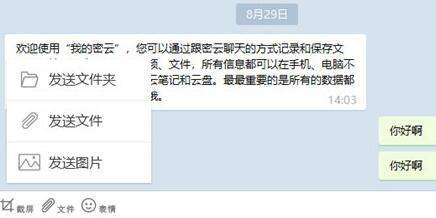 2、重启软件之后就能在聊天界面中看到“我的密云”功能选项了,在里面能传输各种文件,而且传输过程都是加密保护的,非常安全。