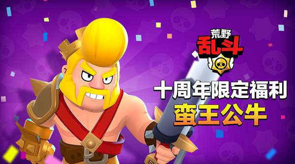 为了庆祝Supercell十周岁的到来,5月14日,《荒野乱斗》国服预约上线了全新福利,不仅送限定皮肤“明星雪莉”,还有十周年限定“蛮王公牛”等你来拿!待正式上线后(6月9日-6月30日),玩家下载并登录游戏,即可进入游戏内商店免费领取。