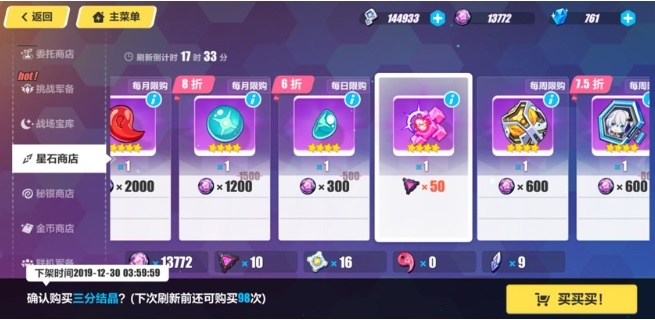 3、星石商店50黑蛋换一个三分结晶,三合一崩坏结晶,正常速度大约一个月左右一个崩坏结晶,这个新手和老玩家时间差有点大。