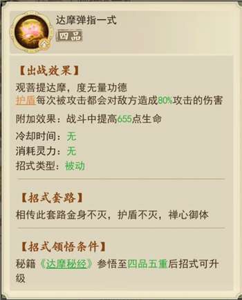 达摩弹指的无视防御伤害需配合护盾使用,只要有护盾,敌方对我方造成伤害的同时也会对敌方自己造成伤害,这是个反伤的原理,并且可以无视对方的防御,在无法破防时,非常好用。